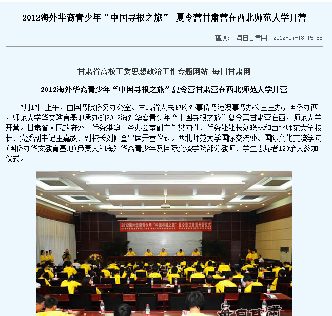 【每日甘肃网】2012海外华裔青少年“中国寻根之旅” 夏令营甘肃营在bevictor伟德官网开营