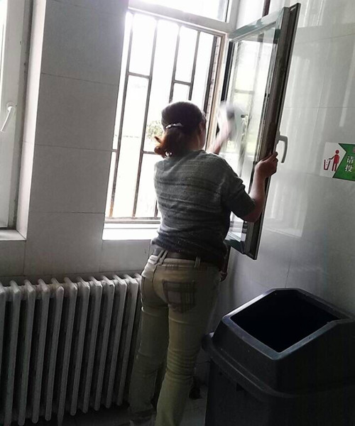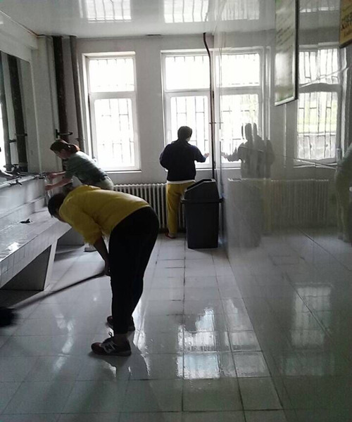5月21日,伟德体育2014级汉语国际教育硕士专业、公共卫生间专项治理第二小组的成员对研究生公寓2号楼B区一楼的卫生间进行了彻底地清扫。