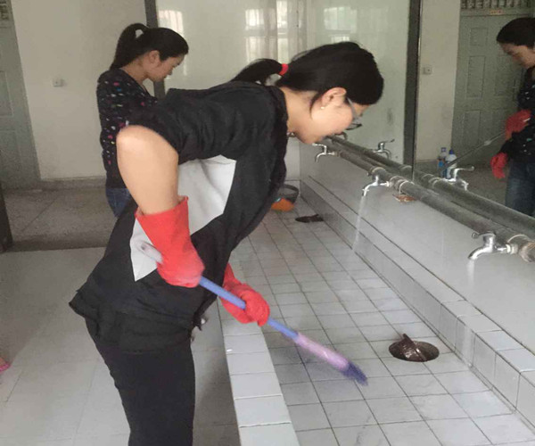 6月3日上午,伟德体育2014级汉语国际教育硕士专业、公共卫生间专项治理第三小组的成员对研究生公寓2号楼B区一楼的卫生间进行了彻底地清扫。