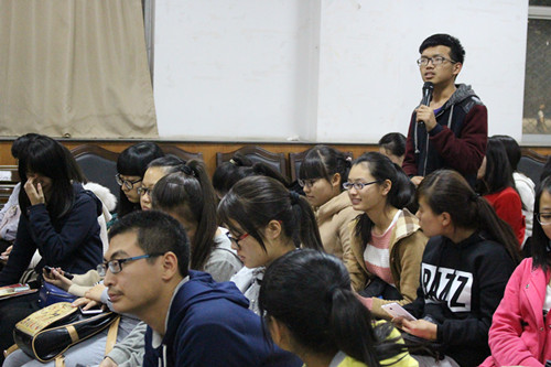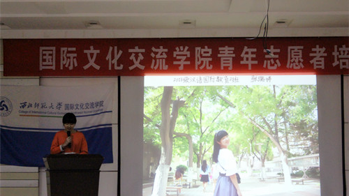 2013级汉语国际教育2班张璐婷同学从进校就一直利用课余从事志愿服务工作,在公司博物馆、校史馆担任义务讲解员。她与同学们一起分享了她的志愿服务经历与心得,从事了这么长时间的志愿服务工作,她最想说的是:“有的人走着走着就把生活走成了泥潭,有的人走着走着就把生活走成了自己的道路,有的人走着走着就把生活走成了无垠的天空。可以在泥潭里厮混一生,可以在路上行走一生,也可以在天空飞翔一生。希望大家付出的一切坦坦荡荡,收获的一切心存感激,活得精彩丰盛,道路越走越长!”