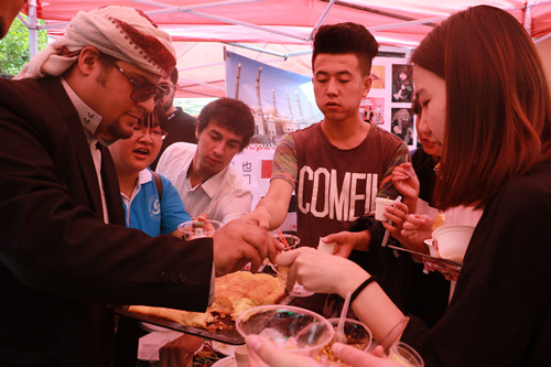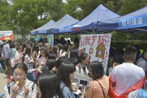 香甜软糯的哈萨克斯坦抓饭、色泽诱人的韩国紫菜包饭、五彩缤纷的俄罗斯沙拉、晶莹剔透的摩尔多瓦奶酪……随着各国代表的出场,主持人宣布依次开馆。在各国美食展区,职工们一边制作展示,一边现场解说,吸引了诸多师生驻足、品尝。