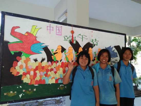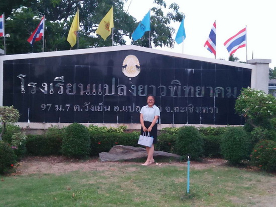 我所在的公司位于泰国东部北柳府,是一所乡镇中学,全校有404名员工,泰国教师23名,而我成为了这所公司的第六任志愿者。作为全校唯一一个汉语老师,从初一到高三15个班的汉语课都得自己去带,而汉语作为公司所开设的兴趣课,每周每班也只有一节,因此刚开始,对于汉语课如何教,怎样才能教得好,都让我觉得有些茫然,但在两周时间里,通过对员工的各种情况进行了解后,我决定让汉语课的文化感染先于文化教学,因为觉得只有让员工对中国文化产生了兴趣,他们才会积极学汉语。
