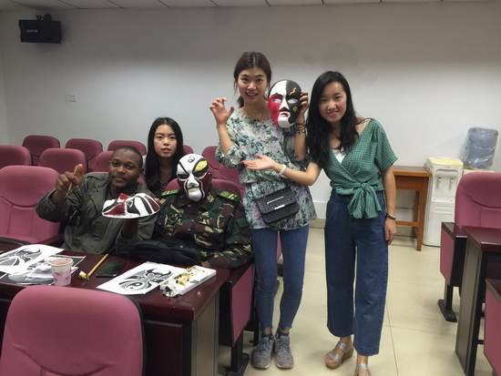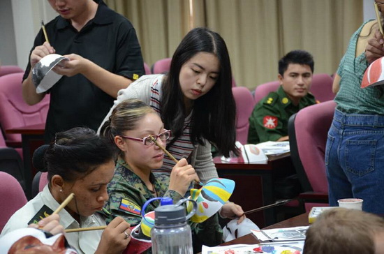 中秋节不放假,公司根据我们各自的特长给不同院校来的实习老师安排了预备课任务,太极和画脸谱是三人要合力展开的文化课程,为了让员工更清楚的了解中国文化,我们精心准备了PPT和视频,久违地穿上了太极服,实实在在地专业了一次。身着白色太极服,看着跟我们一起学得非常认真的外国军人,第一次觉得自己终于像是一名真正的国际汉语教师,心中充满了对民族文化和本专业的自豪感。