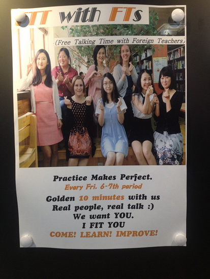 让我介绍一下金浦外高吧,这是一所私立高中,分为汉语、日语、英汉、英日四个专业,我教的班级是高一和高二的汉语系,一共四个班级。
