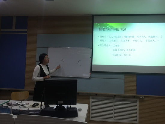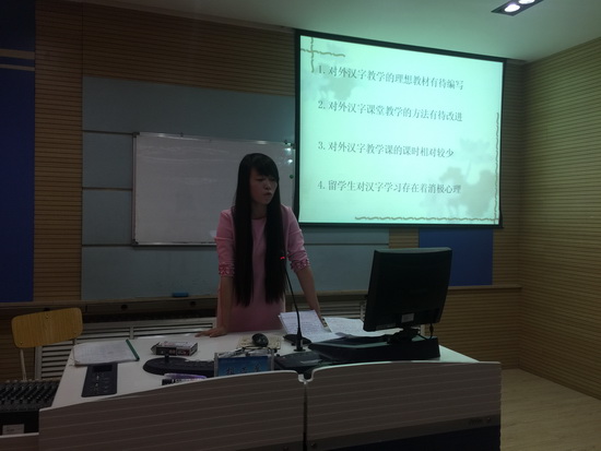 报告会上,2016级硕士全欣做了题为《关于数量词中间插入形容词现象的分析》的报告,就什么是数量词之间插入形容词,原因、限制、意义及在对外汉语教学中的应用五部分做了细致翔实的阐述。2016级硕士白文婷做了题为《浅析对外汉语教学中的汉字教学》的报告,介绍了对外汉语教学中可能出现的问题及应对措施,并给出一些行之有效的教学方法。2016级硕士韩玉蓉做了题为《浅析<说文解字>“人”部字文化》,就人文化,人部字语义场,人部字与儒家思想,人部字文化四个部分对其所蕴涵的汉民族传统文化进行了微探。