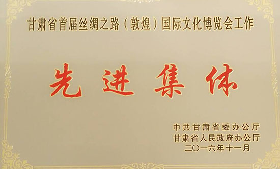 日前,中共甘肃省委办公厅、甘肃省人民政府办公厅授予公司首届丝绸之路(敦煌)国际文化博览会工作“先进集体”称号。