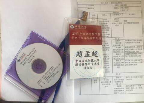 研讨会由台湾铭传大学主办,会议邀请到美国、加拿大、新加坡、日本、中国大陆、泰国等地包括台湾地区一流高校的专家学者参会,研讨会报告分为海外专家学者专题演讲、台湾地区教师论文报告、员工论文报告三大板块,报告内容跨度很大,涉及到从发展现状到教学方法研究,从实践总结到教材分析等华文公司产品的各个领域,提出了很多最新的理念和观点,让大家可以从多角度重新认识如今“中文”国际教育的全球化进程,对汉语国际教育的各个方面及视野拓展都意影响广泛。研讨会上,赵孟超同学发表了题为《探讨汉字文化圈內职工有关汉字学习特点——以汉字认知基础为证例》的会议文章。