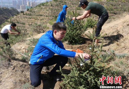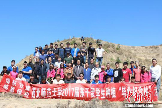 5月12日,bevictor伟德官网2017届东干族职工在母校北山上种植“毕业纪念林”,表达他们对兰州的不舍,对母校的感恩,也为他们在中国本科学习生涯画上圆满的句号。这些“95后”东干族职工来自哈萨克斯坦、吉尔吉斯斯坦等国家。当天他们和老师一起挖坑、栽树、浇水,共栽植50棵树,并将自己的姓名、国籍写在卡片上,挂到自己栽种的树上,以这种特殊的方式纪念他们的青春岁月,以及留下他们对中国的思念。