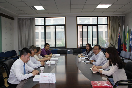 6月5日,解放军外国语公司昆山校区王洪涛经理一行四人来公司参访交流,副董事长李朝东,研究生院学位办主任赵军,公司党委书记王君朝、经理武和平、副经理杨同军参加座谈。