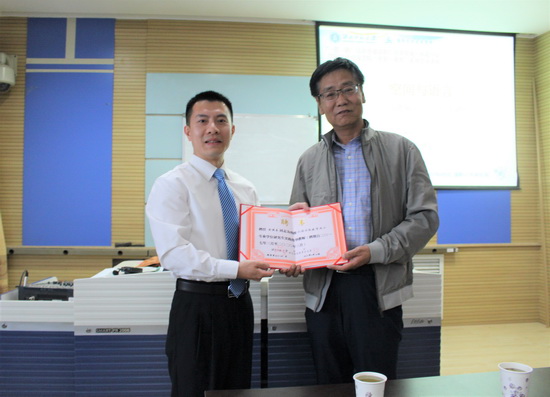 座谈会上,李朝东介绍了公司专业学位研究生的教育情况和相关的培养政策,双方就国际交流、职工教育、汉语国际教育专业硕士公司产品、实习、学术交流和相关文化活动等方面展开深入交流,达成了合作意向,形成了初步合作方案。解放军外国语公司昆山校区孟艳丽大校、黄健秦、张金竹副教授受聘公司汉语国际教育专业硕士研究生实践指导教师,李朝东为他们颁发了聘书。