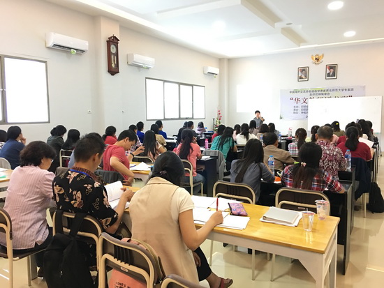 培训期间,冒着印尼当地三十多度的高温,针对汉语听、说、读、写技能存在明显差异的上百名学员,三位教师分“汉语基础知识”、“汉语教学理论与方法”、“中华文化”三个专题对受培学员进行了深入浅出的讲解培训,不少学员通过微信方式与教师交流培训过程中的心得和感受,还不时将自己所指导的中小员工作文中的疑似病句拿出来与培训教师共同分析。培训结束,外地学员没有第一时间赶往分别多日的家,而是通过唱中文歌曲、畅谈培训感受等方式与培训教师话别。同时,专家团成员通过走访了解印尼的华文教育情况,目睹了不同华校的教育成果,感受印尼华文教师敬业勤勉,真正领略了非华裔团队的精神风采,进一步提升了对印尼华文教育的信心。