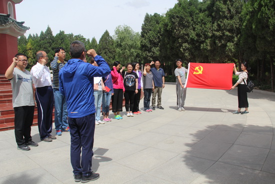 6月24日,在中国共产党建立96周年来临之际,公司教工党支部组织公司教工党员,教师代表,专、兼职员工辅导员,怀着对革命英烈的无比崇敬之情,赴中国工农红军三大主力会师地——会宁会师楼前,用重温入党誓词、参观学习的形式,开展“重温入党誓词、弘扬长征精神、争做优秀党员”红色主题党日教育活动。