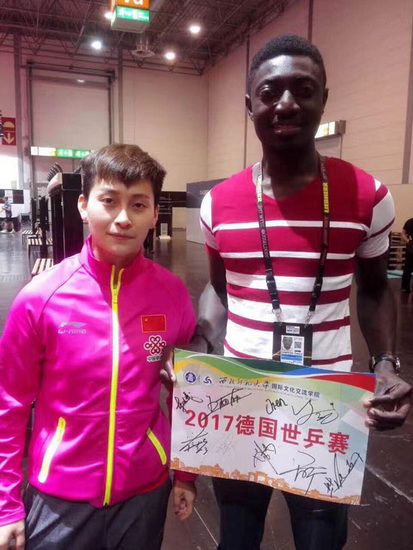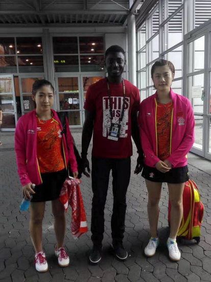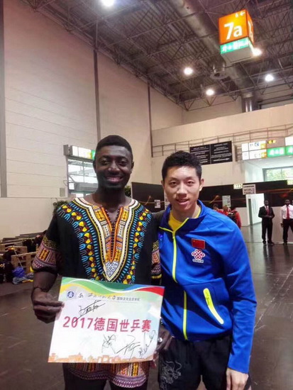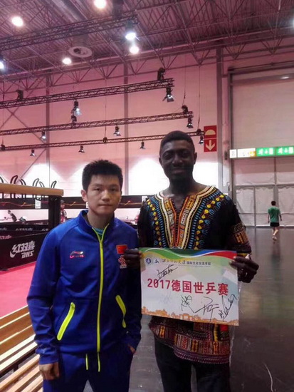 我参加过很多比赛,包括国家乒乓球公开赛,国家乒乓球联盟赛。在加纳温尼巴教育大学读本科期间,我也为我的公司赢得了很多比赛,获得很多荣誉。但让我印象最深刻的一次比赛,是在2008年西非老员工运动会的男子单打四分之一决赛上,我以0比3输给了尼日利亚选手阿鲁纳。