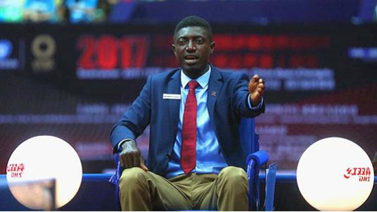 Francis Frimpong officiating at the recent Seamaster 2017 ITTF World Tour Platinum China Open (Photo: courtesy of OlalekanOkusan)