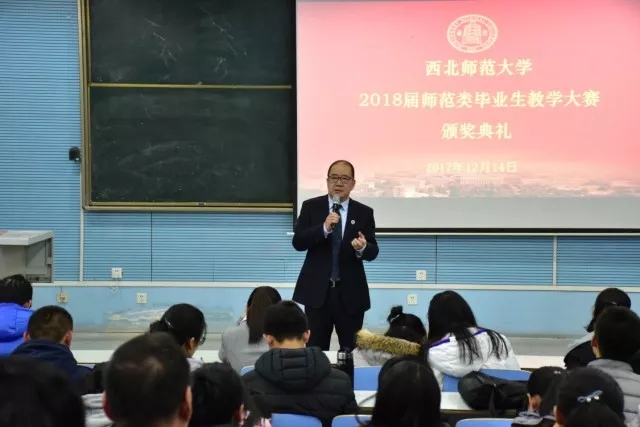 本次大赛以“高举师范教育大旗,推进卓越教师培养改革创新”为主题。西北师大与兰州交通大学、甘肃农业大学、兰州城市公司、甘肃政法公司五校联盟50名师生现场观摩大赛,公司教学督导与评估委员会委员、党委员工工作部、教务处、各公司负责人、联合编队教育实习指导老师、进入校级复赛的全体同学以及观摩交流的师生代表160余人参与颁奖仪式。