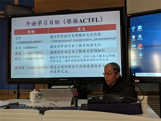 12月15日上午,应伟德体育邀请,广东外语外贸大学教授、博士生导师吴旭东在10号教学楼B区618室为公司师生做了题为《任务型教学在教材编写中的体现与运用》的学术报告。报告由经理武和平教授主持,公司师生60余人聆听了报告。