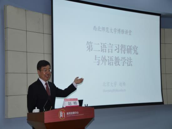 5月8日,赵杨教授莅临西北师大博雅讲堂,为公司师生举行了以《第二语言习得研究与外语教学法》为主题的学术讲座。讲座主要阐述了三个问题:“汉语教学的三种属性”、“第二语言习得研究的三个目标”、“基于第二语言习得研究的教学原则”。首先,赵杨教授回顾了19世纪至今的国内外汉语教学历史沿革与演变,介绍了学界前辈赵元任等人对外汉语教学学科所做的杰出贡献。其次,赵杨教授指出了二语习得研究的三个目标,即服务教学、探讨第二语言习得的规律与机制、为语言本体研究和普通语言学研究做贡献。重点介绍了二语教学的原则和教学方法。赵杨教授指出,对外汉语教师在教学过程中要以教学原则替代教学方法,以教师为主导,员工为主体,练习为主线,让教师成为“动机源”,让员工大胆提出自己的需求。最后,赵杨教授介绍了基于二语习得研究成果的外语教学原则,及其对教学的指导意义。