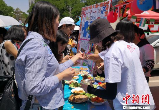 (图为民众品尝各国美食。 刘玉桃 摄)