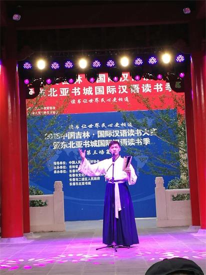 参赛的12位同学分别来自哈萨克斯坦、吉尔吉斯斯坦、苏丹、俄罗斯、埃及。赛前同学们在辅导老师的指导下认真选题、选乐、练习,表现出极大的朗诵热情与参赛热情。在赛场上,12位同学均展示出了最优秀的自己。初赛中,来自哈达克斯坦的同学马智明以一首《念奴娇·赤壁怀古》引爆全场,马智明同学的朗诵声音恢弘、气势夺人,对中国古典诗歌的风韵把握地非常到位,受到评委和观众的高度评价。来自哈萨克斯坦的同学马帝深情款款地朗诵了一首《当你老了》,打动评委与观众。来自苏丹的柳飞絮同学以一首《再别康桥》赢得好评。这三位同学胜利晋级复赛。在第二天的复赛中,马智明同学以《将进酒》、马帝同学以《教我如何不想她》分别夺得甘肃组的第一名与第二名,强势晋级七月全国决赛。