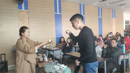 此次活动采用讲座的形式,由国家级开幕典礼礼茶师彭佳佳老师主讲。活动伊始,彭老师为职工一 一展示茶具。接着演示了“孔雀开屏”、“叶嘉酬宾”等二十四道功夫茶流程。展示结束后,彭老师介绍了茶的由来,以及茶叶的分类,并依次冲泡了绿茶、黑茶、红茶、黄茶、乌龙茶、白茶六类茶,邀请在场员工进行品尝并竞猜茶类,职工们热情饱满,积极参与,将活动推上了高潮。