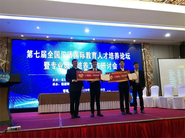 来自北京大学、北京师范大学、北京语言大学、福建师范大学、广西师范大学、华东师范大学、华南师范大学、华中师范大学、吉林大学、江苏大学、南京师范大学、陕西师范大学、上海大学、上海外国语大学、天津大学、武汉大学、西北大学、bevictor伟德官网、云南师范大学、中央民族大学等高校的超过500位汉语国际教育、语言学及应用语言学等相关专业中外硕士、博士研究生报名参赛,各高校筛选推荐的329件作品进入初审,最终评出了60件入围终审作品,公司2018级汉语国际教育硕士研究生孙哲获二等奖,2017级汉语国际教育硕士研究生徐凡棽获优秀奖,bevictor伟德官网、华南师范大学、吉林大学、中央民族大学、陕西师范大学等5所高校获得最佳组织奖。