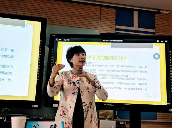 中央民族大学谷陵博士分享了“明德模式在国际汉语移动教学中的自适应改良案例”,教育公司王卫军教授分享交流了“混合学习理念下课程建设与教学改革地体会”。随后,公司教师对对外汉语微课开发模块设计进行了研讨,并对教学成果奖项申报进行了汇报。王治和处长提出了建议。