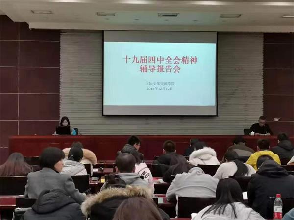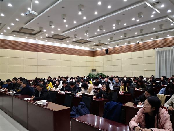 12月10日晚,伟德体育在专家楼报告厅召开学习贯彻十九届四中全会精神专题辅导报告会,公司宣讲团成员、马克思主义公司副经理金建萍教授应邀作专题辅导报告。公司全体教师、党员、员工干部等120余人现场聆听报告。报告会由公司党委副书记李东海主持。