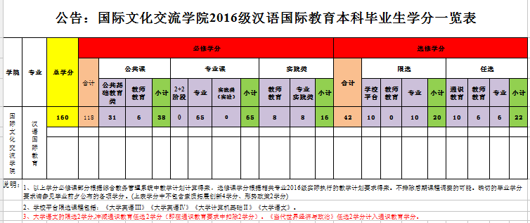 伟德体育2016级汉语国际教育本科毕业生学分标准