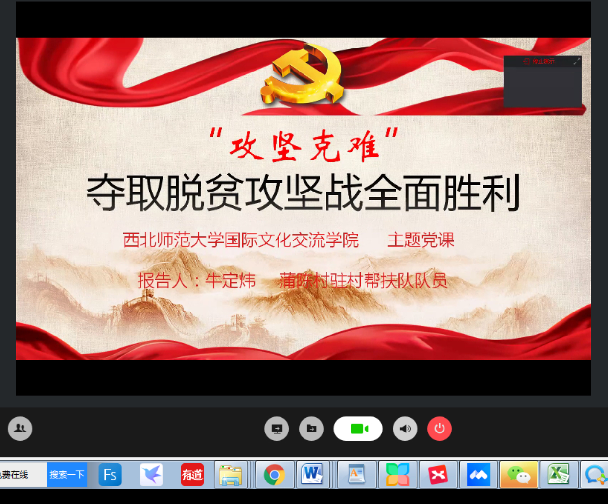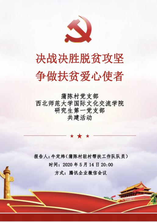 打赢脱贫攻坚战是实现中国全面建成小康社会的重大任务,伟德体育的帮扶单位是礼县雷坝镇蒲陈村。在公司驻村帮扶工作队队长兼第一书记李喜平同志和驻村帮扶队员牛定玮、王海波同志的带领下,蒲陈村的脱贫工作取得了突出成绩。为了更好地加强高校与乡村党支部的密切联系,近日伟德体育研究生党支部与蒲陈村党支部举行了“决战决胜脱贫攻坚 争做扶贫爱心使者”的高校和扶贫村共建党支部、借助信息化平台开展线上主题党课的活动。活动特邀公司科学研究院干部、礼县雷坝镇蒲城村驻村帮扶队员牛定炜同志通过企业微信网络平台为伟德体育研究生第一党支部19名党员讲了一堂线上《“攻坚克难”夺取脱贫攻坚战全面胜利》的主题党课。