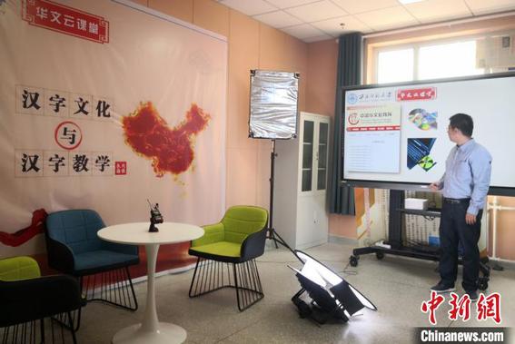 图为西北师大“华文云课堂”教师讲课。 刘玉桃 摄