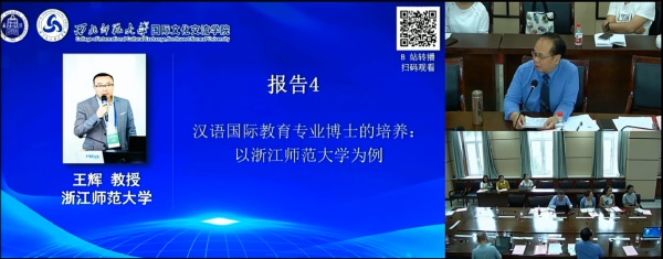 王辉教授结合浙江师范大学汉语国际教育专业博士的培养,提出科学的研究方法和多学科交叉融合创新素养对汉语国际教育博士培养尤为重要。除此之外,王辉教授阐述了汉语国际教育专业博士人才培养需处理好的几对关系,包括专业建设和视野发展关系、专业性和学术性关系、核心素养和特色发展关系以及培养目标和课程设置关系。