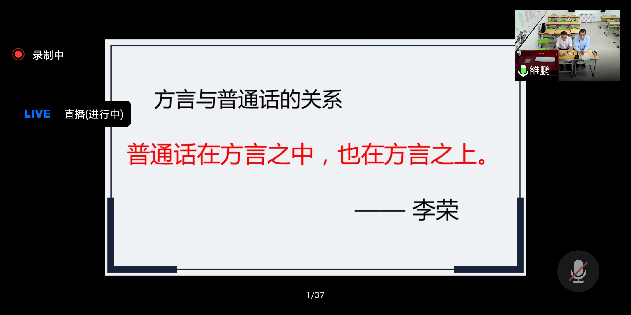 讲座伊始,雒鹏副教授指出本次讲座“方言与普通话的学习”实际上涉及了“方言”和“普通话”两个范畴,其中包括两个范畴的一些概念和二者的关系问题,也包括如何通过方言学习普通话的问题。