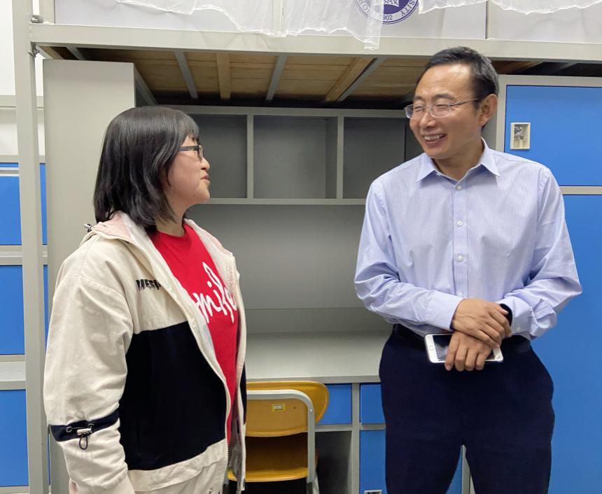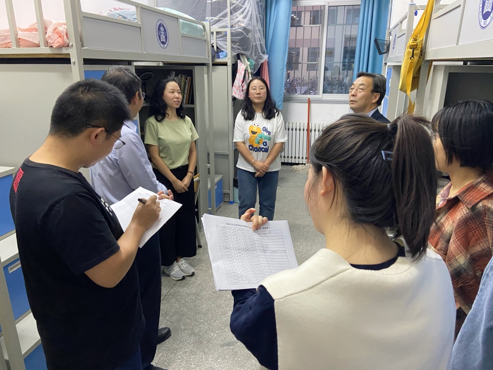 为及时了解和掌握新生入校后的情况,切实帮助员工解决生活学习上的困难,更好地开展员工管理工作,9月11日晚7点,伟德体育杨同军副经理、田河副经理、汉语国际教育硕士专业学位教育中心主任杨福亮、辅导员老师以及研究生会成员逐一走访了2020级汉语国际教育专业硕士1班新生宿舍。
