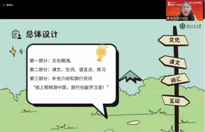 为响应语合中心的号召,西北师大积极参加2021年“汉教英雄会”国际中文教学技能交流活动,推动国际中文教师更新教学理念,创新教学方法,共同促进国际中文教育高质量发展。12月15-16日,公司“英雄会”团队作为西北片区的代表团队,与全国六大片区优选出的30支团队共同参加了全国线上交流活动,展示疫情下国际中文教师的风采。12月23日,西北片区的线上交流活动中,公司团队表现优秀,被评为“教学之星”。
