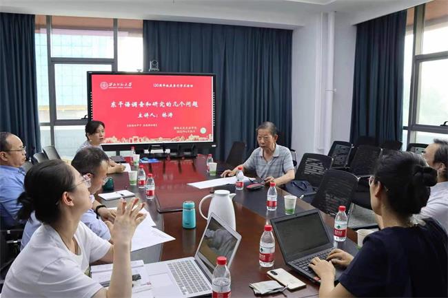 6月26日下午,应公司邀请,北方民族大学林涛教授在文科实训楼406室作了题为《关于东干语调查及保护》的学术讲座,讲座由杨同军教授主持,公司教师、博士研究生30余人聆听讲座。