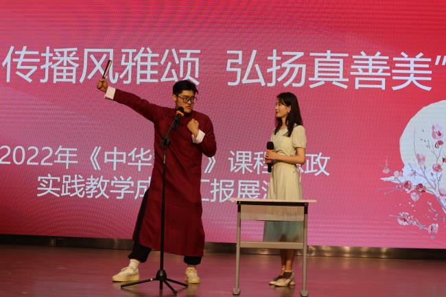 汇报展演中,学子们通过自编自导的舞台情景剧、歌曲、舞蹈、相声、戏曲、武术、快板等节目,将书法、绘画、乐器、刺绣、陶艺、剪纸、手工制作等形式融进节目中,充分展示了中华才艺课程学习成效。