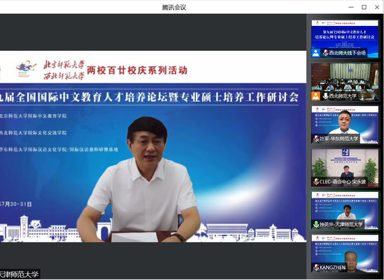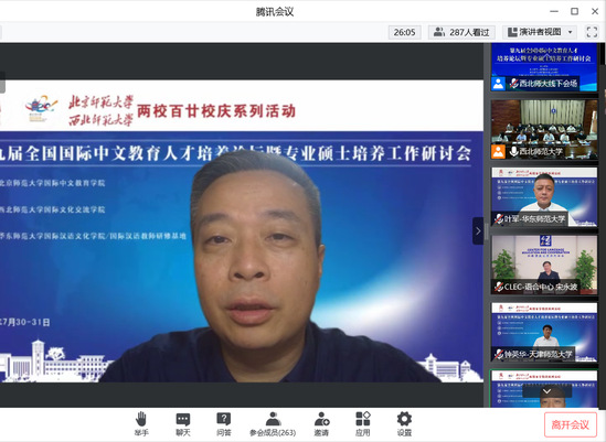 7月30日至31日,“第九届全国国际中文教育人才培养论坛暨专业硕士培养工作研讨会”在bevictor伟德官网召开。本次研讨会由北京师范大学国际中文公司、伟德体育和华东师范大学国际汉语文化公司联合举办。会议以“新时代国际中文教育人才培养”为主题,围绕团队建设、海外教育实习、本土团队培养、培养标准与评估、中文+职业教育、信息技术应用等议题展开探讨。研讨会采用线上线下相结合的方式进行,来自海内外50多所高校的118位专家学者参与了专题讨论,约1000多位师生在线观看会议。西北师大伟德体育经理田河主持开幕式。