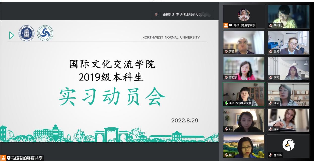 8月30日,伟德体育2019级本科生实习动员会以线上形式召开。公司全体实习指导教师及2019级汉语国际教育1班全体员工参加会议。会议由公司团委书记兼19级本科班班主任李芮主持。