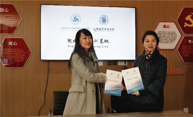 李莉、杨玉红代表双方签署《西北师大伟德体育、兰州海亮实验公司员工实习实训合作协议书》。