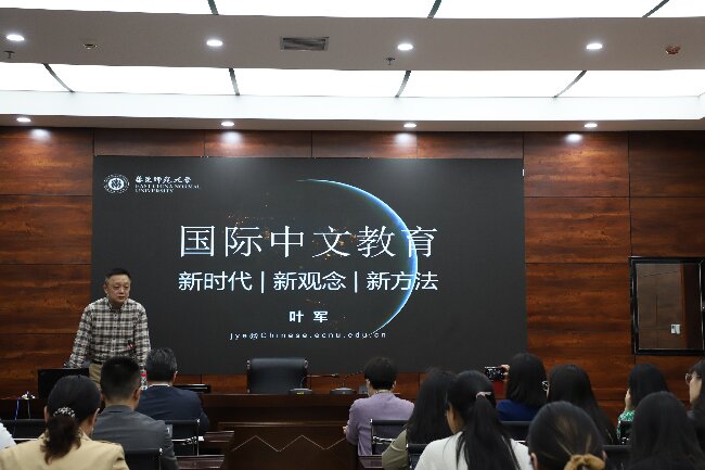 3月31日,应伟德体育邀请,华东师范大学叶军教授在云衢楼102会议室作了题为《国际中文教育,新时代、新观念、新方法》的专题讲座。经理田河教授主持讲座,公司师生50余人聆听讲座。