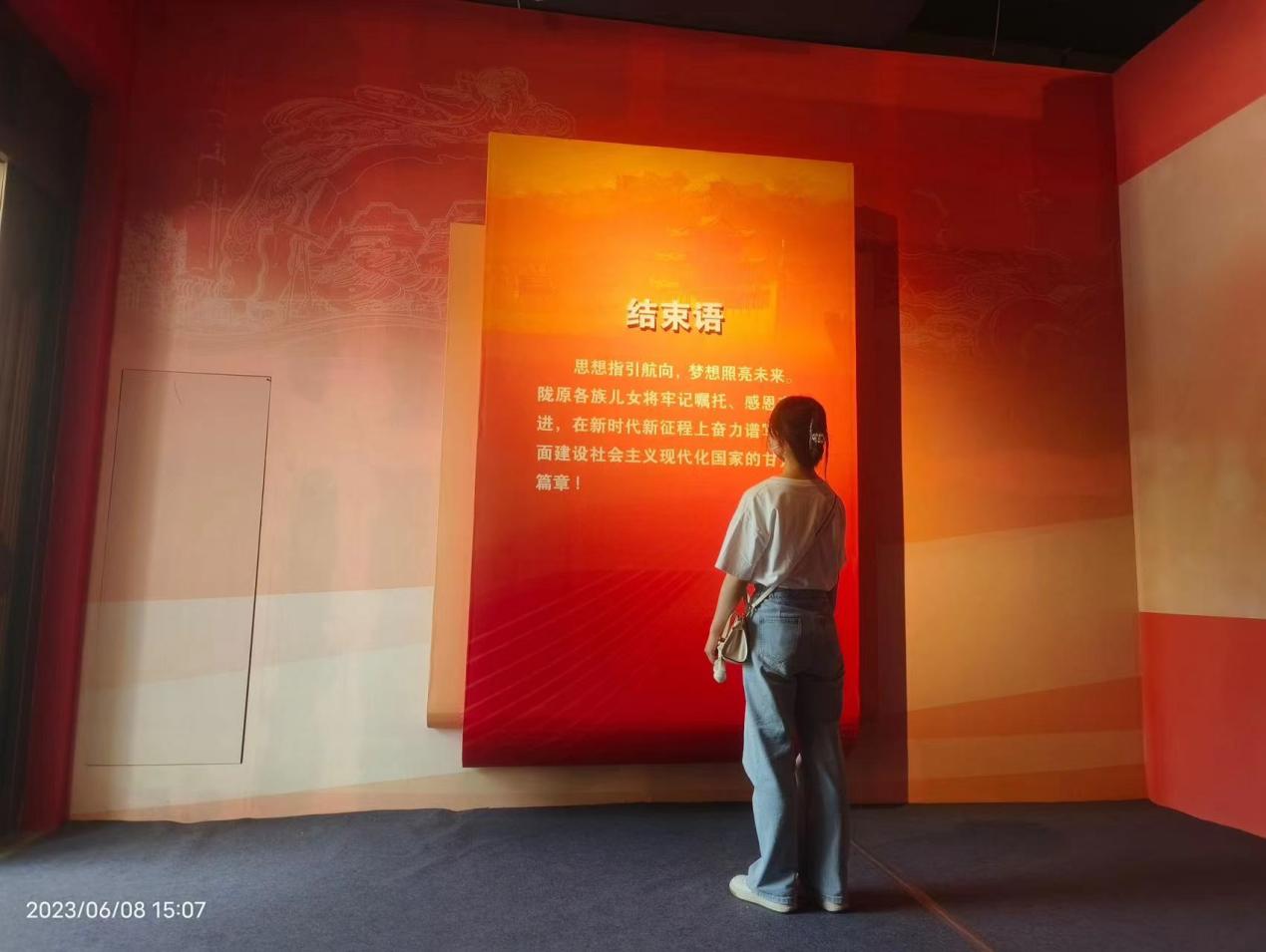 王雨欣:我被陇原优秀儿女坚守理想、甘于奉献、发奋图强的精神打动。他们是抗疫英雄,是优秀党员,是全国脱贫攻坚楷模,是最美奋斗者。展厅内的陈列是甘肃儿女为美好生活努力奋斗的痕迹。作为新时代的青年,我们应对好好学习陇原各族儿女的奋斗精神,在新时代新征程上谱写华丽篇章!