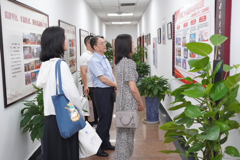 座谈会后,江琦一行实地参观考察了西南大学国际公司来华职工特色品牌活动成果展示。