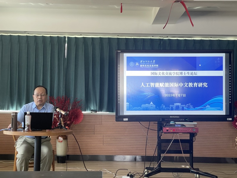 论坛上,博士生导师武和平教授作题为《类ChatGPT生成式AI在国际中文教育研究中的应用》的主旨报告。武和平在报告中指出,Chat GPT是生成式AI的一座里程碑,生成式AI在国际中文教育研究全流程中的应用迅速发展,并在文献查阅、文献阅读、论文撰写、修改润色等方面发挥了巨大作用。他强调随着AI技术的不断发展,学术研究中的“问题意识”和提问能力将越来越重要,将现实问题学术化、学理化变为科学研究问题是进行高质量研究的关键。报告最后,武和平向同学们演示了Chat GPT的相关应用,他表示,Chat GPT能够扮演一个智能助教的角色,同学们应善加利用其优势提高自身的学习和科研能力。