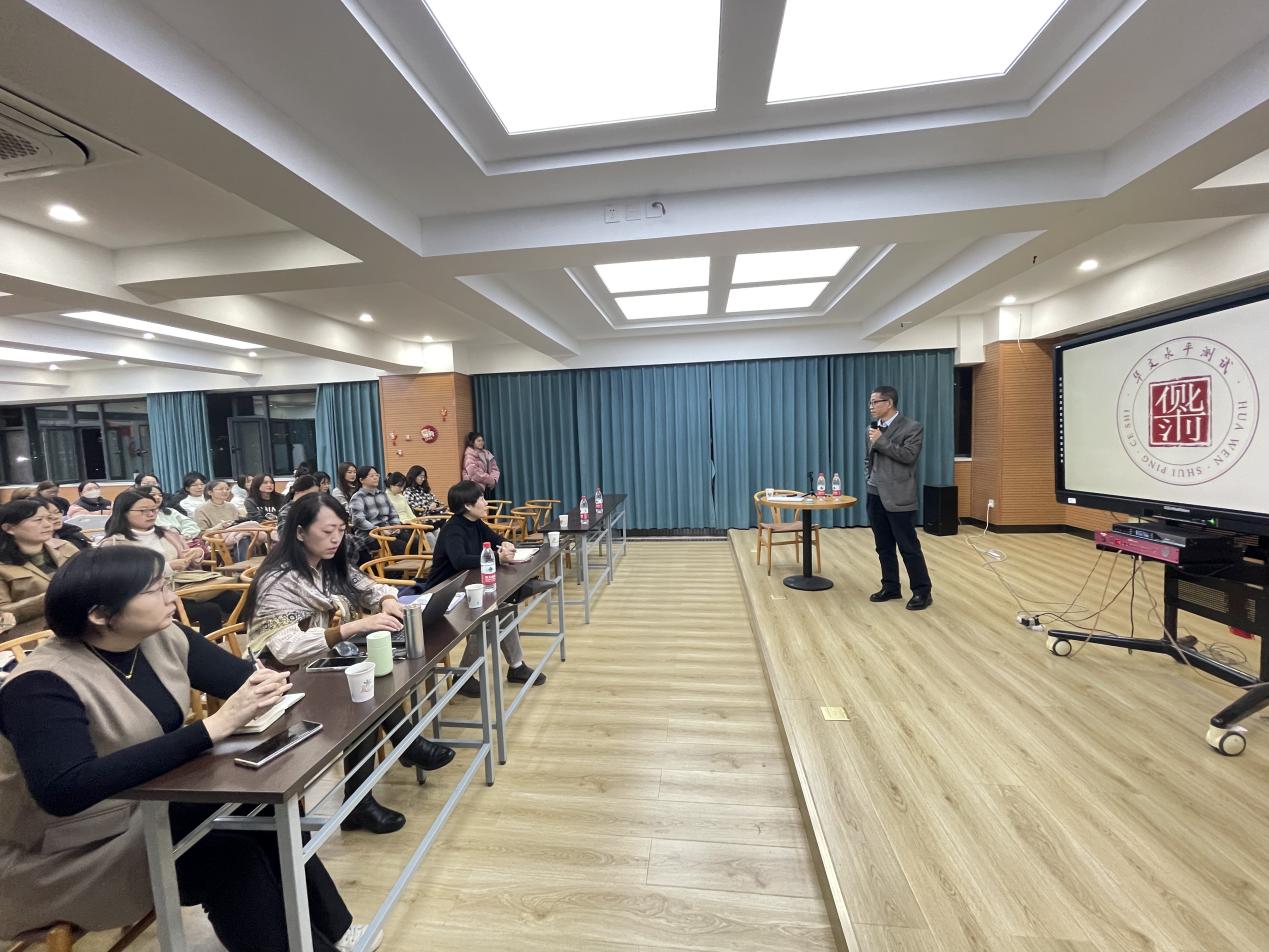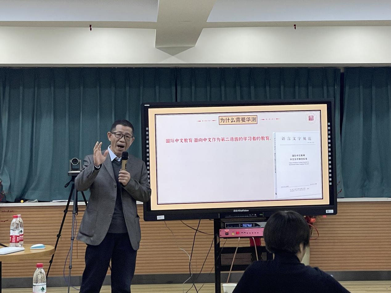 讲座中,王汉卫详细介绍了华文测试的整体情况,突出其重要性与必要性,提出了“引导教学”的重要教学理念。他通过对比,展示了他对考试框架设计的改革和思考,并引导员工思考中文教学的方式。