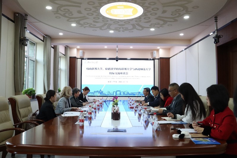 李文生对叶琳娜·埃菲莫夫娜·梅尔宗和赫拉默瓦·玛丽娜一行来校表示热烈欢迎,指出俄罗斯喀山联邦大学、康德波罗的海联邦大学与西北师大同为两国师范教育重点院校,在历史传承、学科设置、办学特色等方面高度契合且有广阔合作前景。
