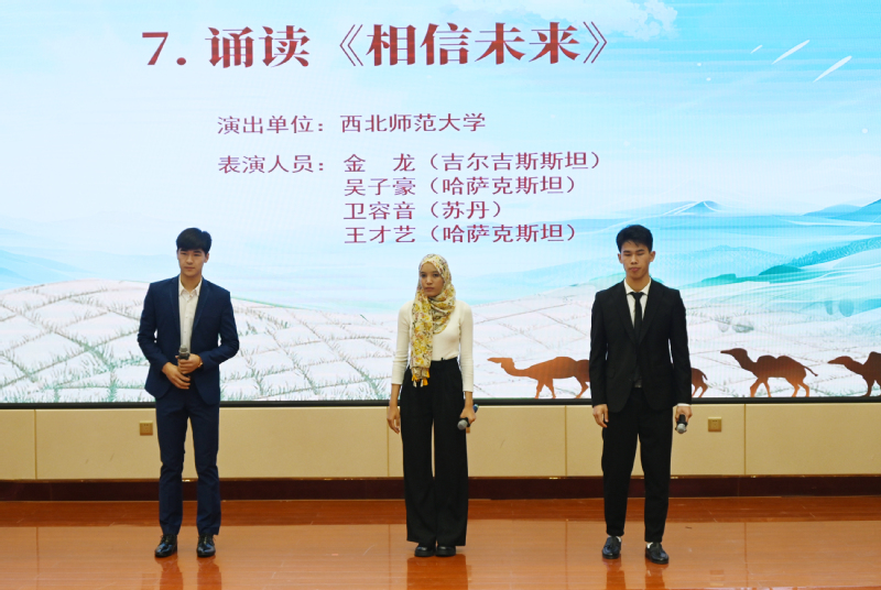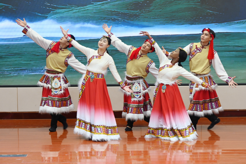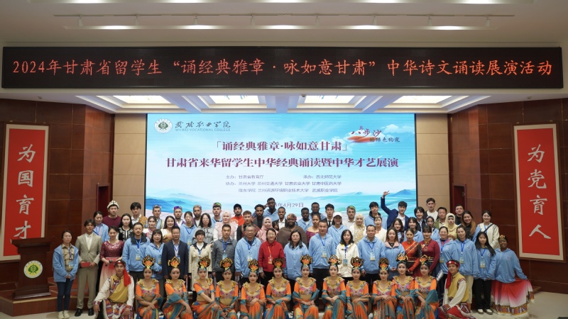 29日,在武威职业公司,各高校职工还开展了“诵经典雅章·咏如意甘肃”为主题的中华诗文诵读展演活动。职工在《读中国》《黄河落日》《生如胡杨》等经典雅章诵读中,以及《我把甘肃唱给你》《美丽的神话》等民族歌舞展演中,西北师大职工表演了藏族舞蹈《尼玛情歌》,朗诵了《相信未来》《将进酒》等,充分交流中国文化学习成果和中国国情教育成果,切身感受中国优秀传统文化魅力。展演结束后,职工们观看了武威职业公司员工表演的非物质文化遗产《西凉乐舞》《攻鼓子》展示。