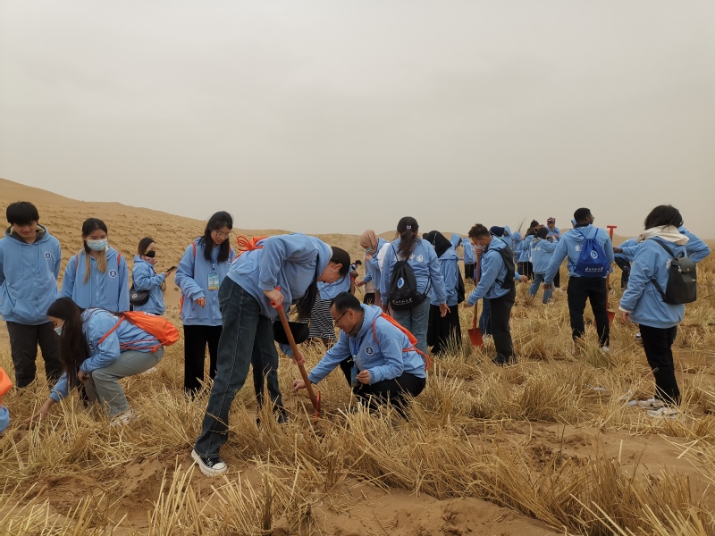 在治沙点,大家纷纷拿起工具开展压沙植树活动,挖沟槽,铺稻草,压出了一块块草方格,种下了一棵棵梭梭苗,劳动场面热火朝天。兰州大学越南职工武氏琼庄表示,在《中国概况》课堂上,老师讲过愚公移山的成语故事,我感觉这里几代人治沙的过程,和愚公移山不怕困难的精神是一样的,这种克服困难改善环境的精神是非常值得学习的。