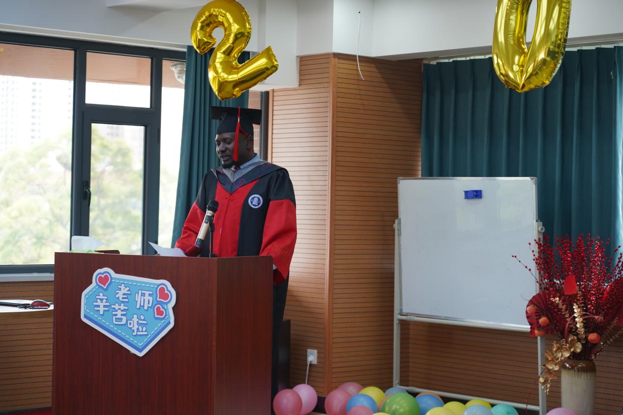 职工博士毕业生代表安纳斯发言时表示当我们步入人生的下一个篇章时,让我们发扬我们所学到的教训和我们所珍视的价值观。愿我们继续追求知识,增进理解,为社会做出积极贡献。