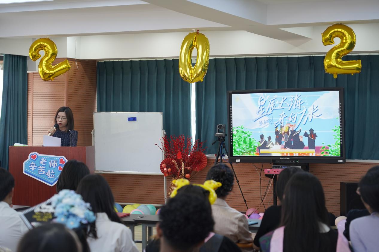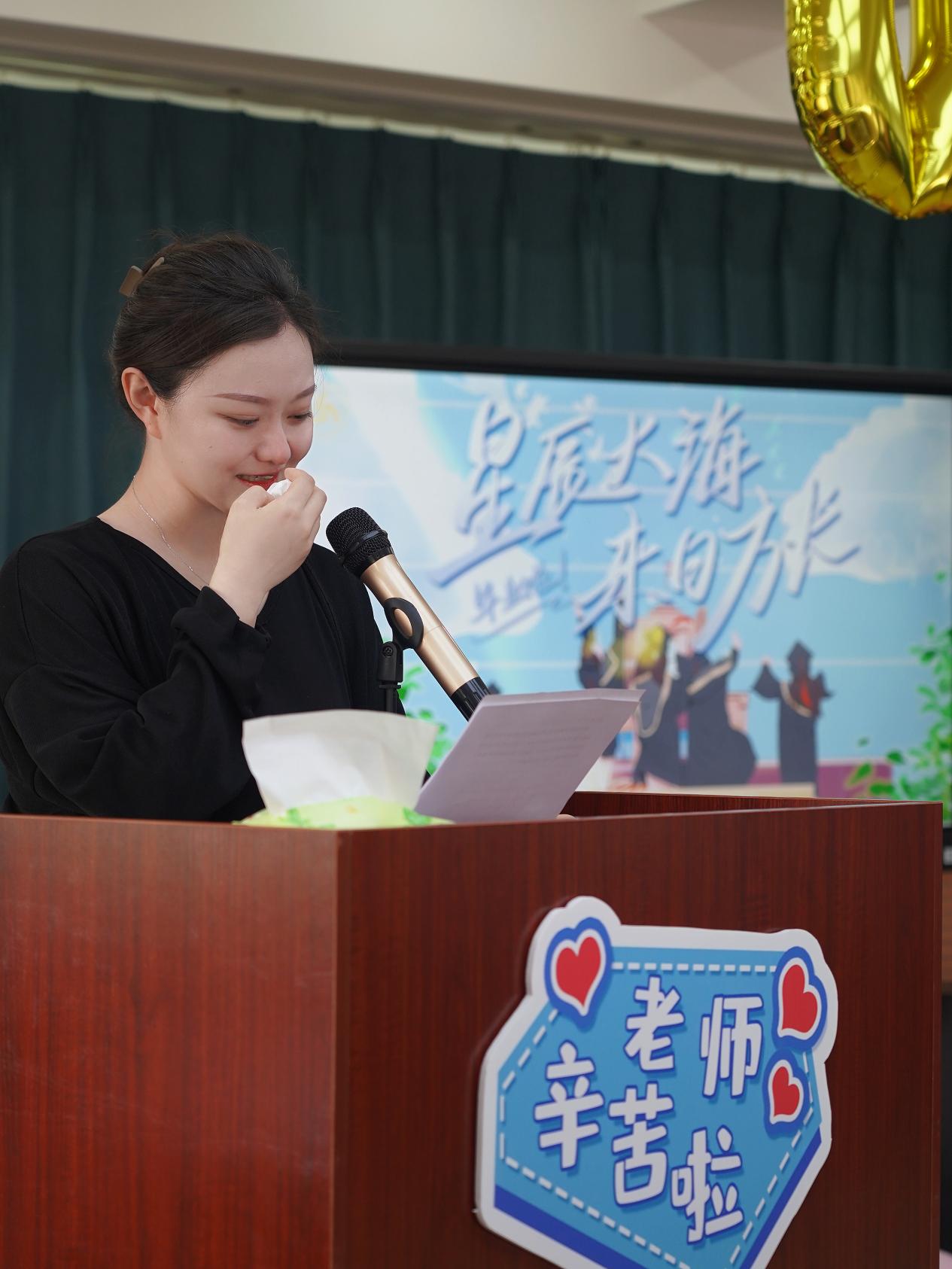 本科毕业班班主任江琦老师、研究生毕业班班主任侯宇老师、职工班主任张晓芳老师她们以亲切之语表达了对毕业生的祝贺。人生的航程之上,风暴正在酝酿、海潮正在翻涌。作为掌舵者,大家唯有以清醒替代侥幸,以勇敢替代怯懦,不屈不挠、坚持到底,方能实现直挂云帆、长风破浪的精彩与开阔。