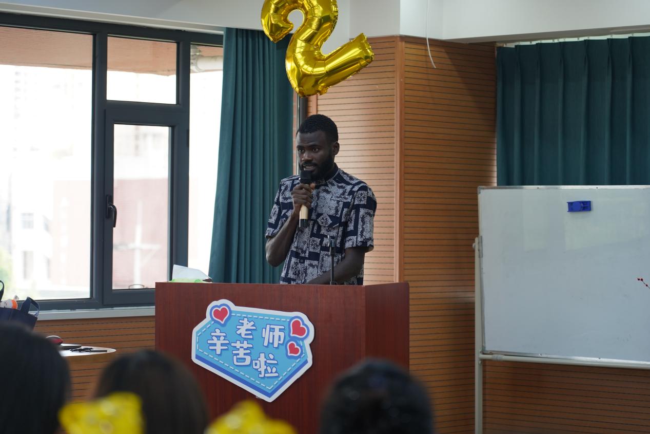职工汉语研修生代表苏庆分分享了自己与师大的故事。他想对所有即将毕业的同学们说,无论我们将来走向何方,请记住,我们曾在bevictor伟德官网度过了美好的时光,这段经历将永远铭刻在我们的心中。愿我们都能在各自的领域里创造出新的辉煌,为母校争光!